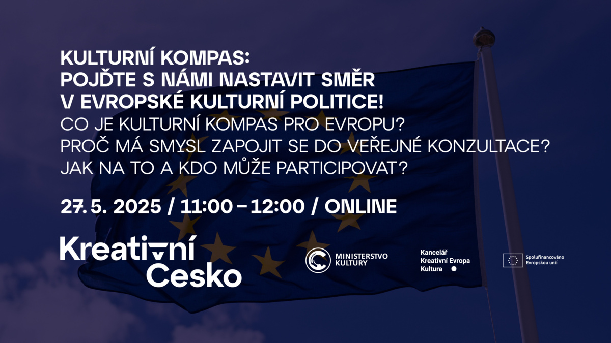 Ministerstvo kultury a Kancelář Kreativní Evropa Kultura zvou zástupce kulturního a kreativního sektoru k účasti na webináři věnovaném Kulturnímu kompasu Evropské komise. Dozvíte se, k čemu tento strategický dokument slouží a jak se můžete aktivně zapojit do tvorby jeho obsahu. Veřejná konzultace ke Kulturnímu kompasu pro Evropu je otevřená do 30. května 2025. Cílem je shromáždit názory a návrhy z terénu na to, jakou roli má kultura sehrávat v budoucích evropských politikách. Nabízíme odbornou podporu, aby byl hlas české kulturní scény dostatečně slyšet. Připojte se a ovlivněte podobu evropské kulturní strategie!