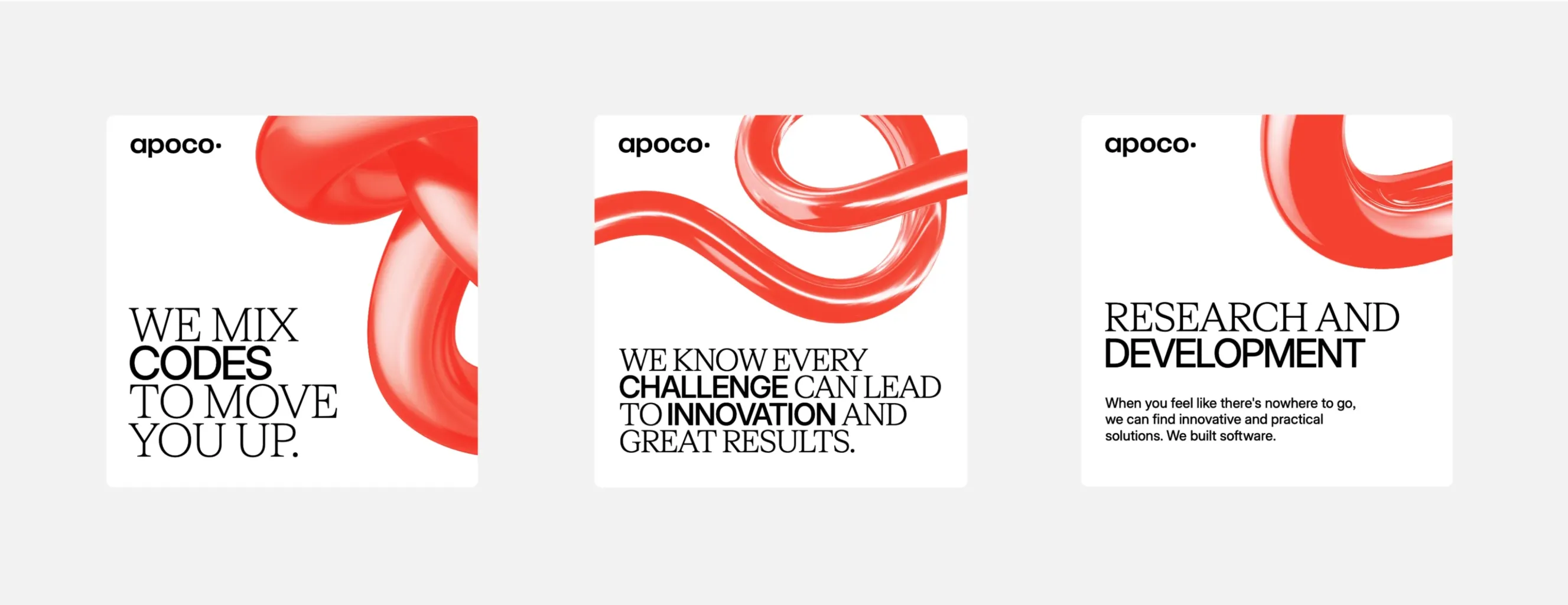 Když potřebujete naprogramovat nějakou specialitu a nevíte kudy kam, jsou tu borci z Apoco. Kouzelníci, kteří vytváří věci, které zatím nikdo nevytvořil. Tvůrci, kteří hledají nové cesty ve svém oboru. Hledat chtěli v novém kabátě, tak jsme jim ho udělali. Původně se jmenovali Brainsoft, ale měli problém s tím, že jejich název je příliš obecný, takže jsme jim vymysleli i ten.