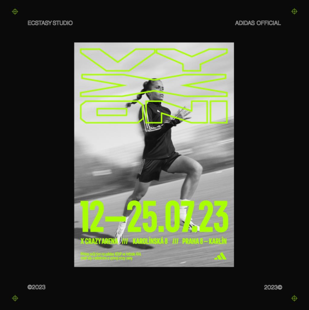 Adidas Crazy Fast X Cup Vizuální identita této kampaně, byla vytvořená pro Adidas Official, konkrétně se jednalo o speciální event k odhalení nových kopaček Adidas Crazy Fast. Hlavním výstupem bylo vlastní písmo, série plakátů, logotyp, bannery, komunikace na sociálních sítích Speciální poděkování patří Barboře Pošepné a společnosti Adidas Official. Design navrhl Vojtěch Beneš Ecstasy Studio 2023