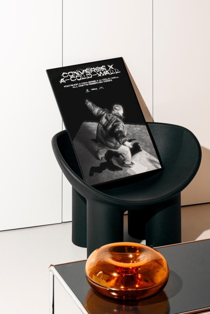 Footshop x Converse A — Cold — Wall Pro kolaboraci Footshopu s Converse byla vytvořena kampaň, která odhaluje nové Converse boty – K této konkrétní kampani bylo vytvořeno krátké propagační video a analogové fotografie pod vedením Studio BS22, následně byl vytvořen vlastní logotyp, série plakátů, titulkové písmo do propagačního videa, komunikace na moc sítě Odkaz na propagační video: https://studiobs22.com/work/converse-x-a-cold-wall-by-footshop/