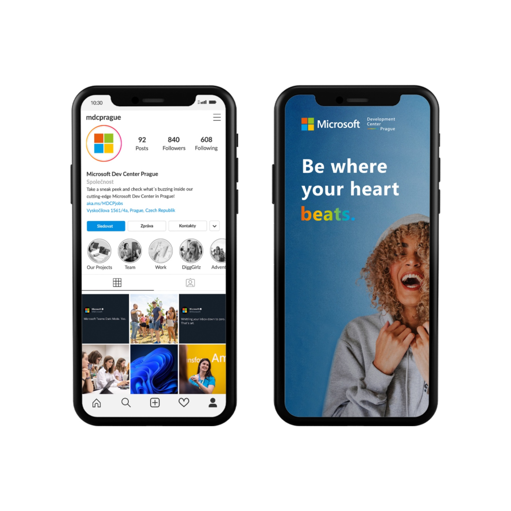 Podílela jsem tvorbě loga a doprovodné vizuální identity pro pražský office firmy Microsoft. Součástí práce byla tvorba loga, claimu a komunikace. Claim (Be where your heart beats.) a myšlenku teď do světa pumpuje Microsoft Development Center Prague, který sídlí přímo v samotném srdci Evropy, v Praze. Ve městě, které má tolik co nabídnout, chce svým stávajícím, ale i nově příchozím zaměstnancům dát jasně najevo, že Praha je to město, které žije a pro které bys měl žít i ty. Pražské vývojářské centrum totiž patří mezi 20 největších a sdružuje vývojáře ze 40 zemí světa.