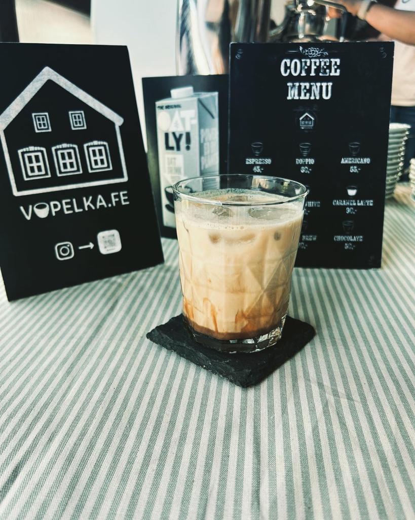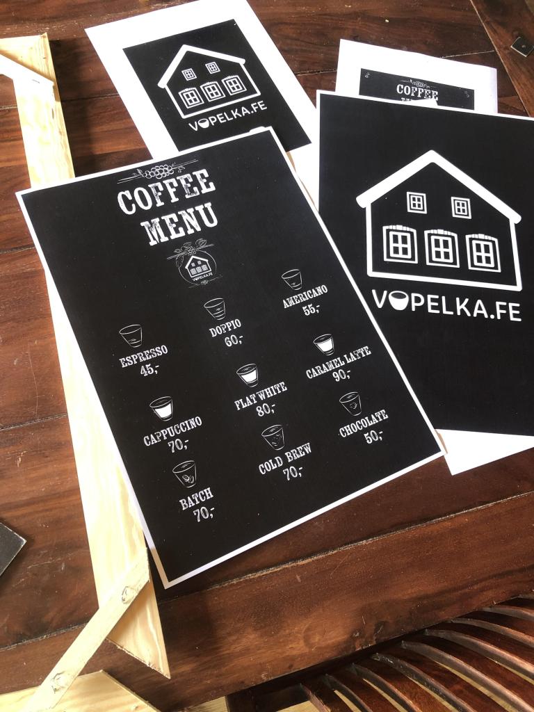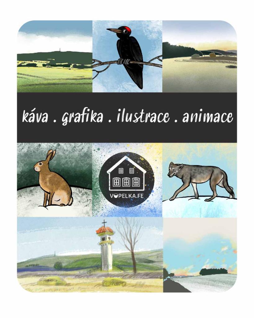 Tvorba Loga na espresso bar Vopelka.fe svým zpracováním odkazuje na místo vzniku (jihočeské vesnické stavby). Více na instgram. profilu Vopelka.fe. Malý stánek měl ambici sloužit pro turisty přes sezonu. Tento projekt se ale posunul do Boršova nad Vltavou a po změně konceptu je tady plnohotnotná kavárna.