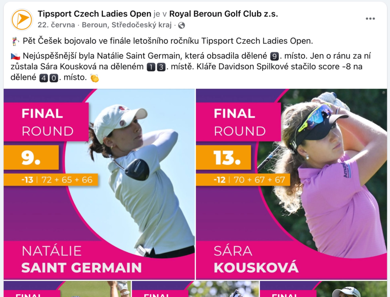 Být u toho, když padne rozhodující putt. Během prestižního turnaje Tipsport Czech Ladies Open (ze série Ladies European Tour) jsem se podílel na "on-site" správě sociálních sítí. Zajišťoval jsem real-time zpravodajství na Instagramu a Facebooku – od ranních startů až po vyhlášení vítězky. To zahrnovalo okamžitou tvorbu Reels s klíčovými údery, publikaci Stories a koordinaci výstupů s fotografy. Cílem bylo nejen informovat o skóre, ale vtáhnout diváka do hry a maximalizovat visibilitu komerčních partnerů turnaje i samotných hráček.