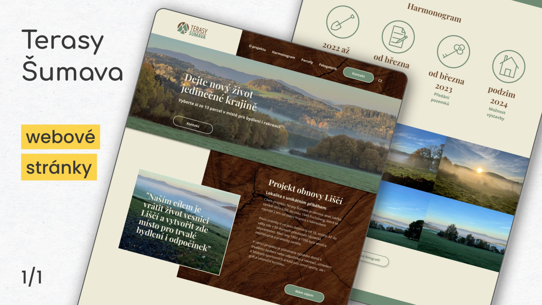 Developerský projekt Terasy Šumava má za cíl pomoci obnovit zaniklou obec Liščí. Při tvorbě webu, jako hlavního prodejního kanálu, jsme se zaměřili na jednoduchost a přehlednost. Návštěvníci snadno získají všechny informace o projektu, o dostupných pozemcích a kontaktech na obchodního zástupce. Spolu se zadavatelem jsme prošli kompletním procesem od návrhu struktury a wireframe přes webdesign až po implementaci na systému WordPress.