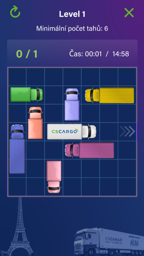 Zaměstnanecká online logická puzzle hra Vyparkuj a vyjeď v rámci MS v rugby ve Francii. Principem hry bylo z herního pole vyjet s kamionem za co nejkratší čas a nejmenší počet tahů. Hráči tvoří týmy po dvou a jejich výsledky se sčítají. Hráči s nejnižšími hodnotami vítězí. Realizace spočívala v realizaci autorských herních scénářů, UX, webdesignu, komplexního developmentu a provozu, dohledu nad provozem a prezentací výsledků.