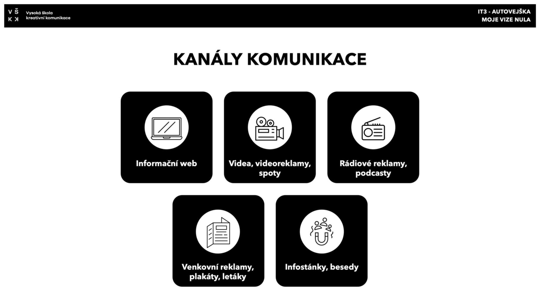 V rámci předmětu "Intermediální tvorba 3" jsem společně se svou skupinou vyvinul nápad pro teoretickou nástavbu základní autoškoly, tzv. "Autovejšku" - tato by řidiče naučila, jak postupovat při krizových situacích a nabídla by rozšíření znalostí nad rámec autoškoly.