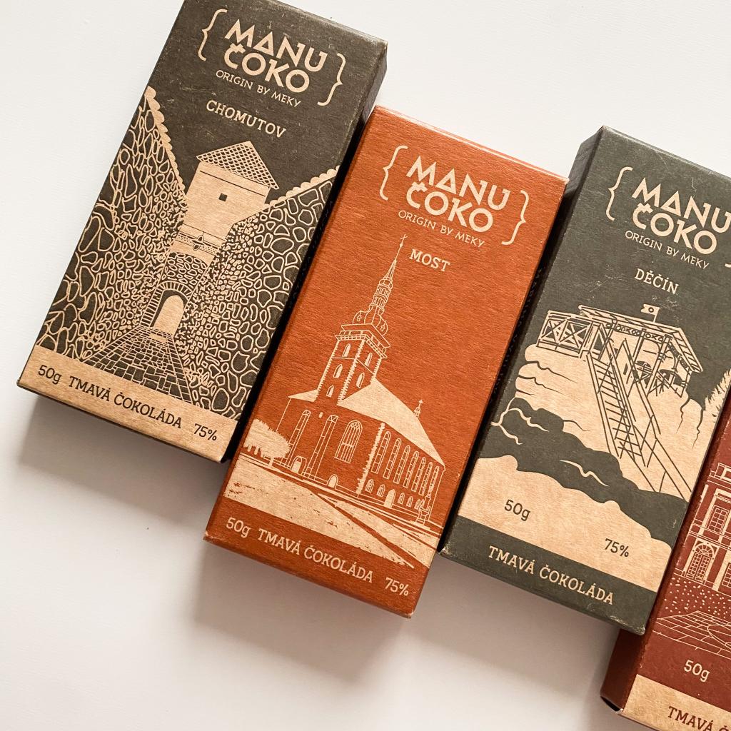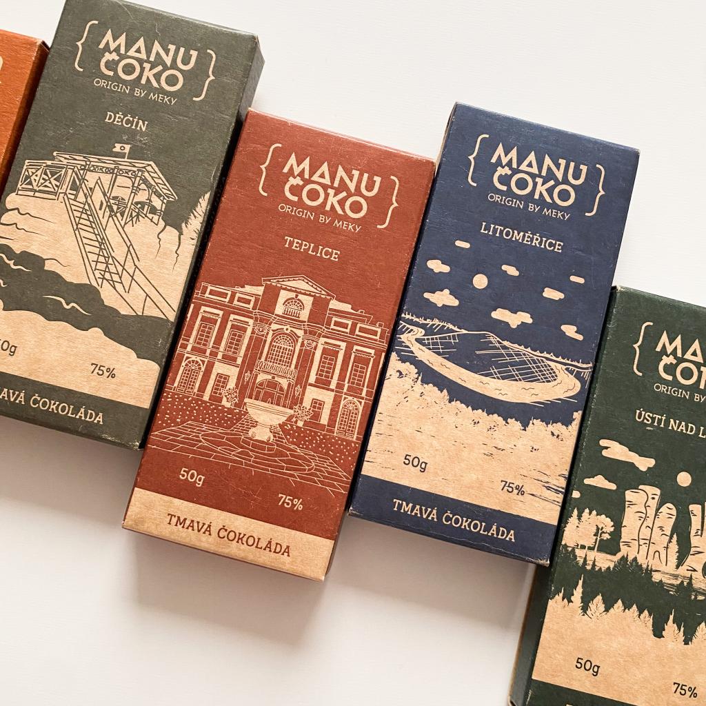 Edice ručně ilustrovaných obalů, která vznikla v kooperaci s ManuČoko, výrobcem řemeslně zpracovaných čokolád, které se pyšní vysokou kvalitou kakaových bobů. Vzniklo 7 obalů pro 7 okresních měst Ústeckého kraje. Na každém obale je zpracovaná ilustrace zajímavého místa daného okresu, jako je třeba Katova ulička v Kadani, nejužžší ulička v česku.