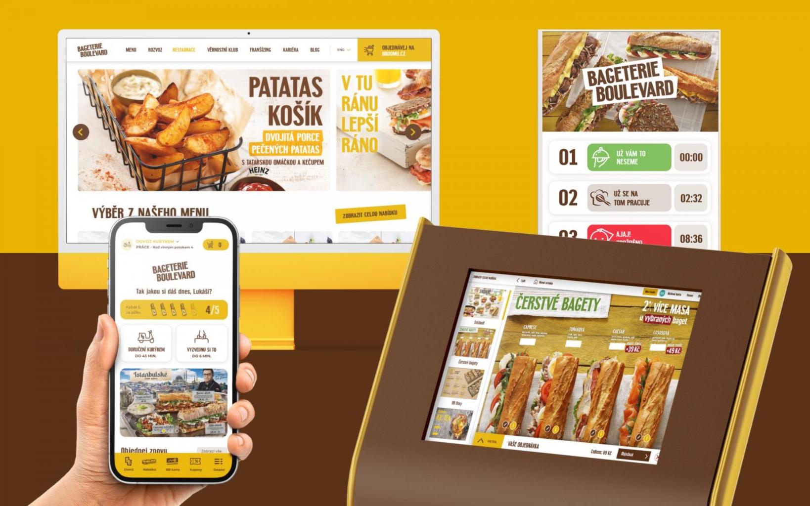 Pro Bageterii Boulevard jsme vytvořili jednotný a propracovaný designový styl, který zajišťuje konzistenci na všech platformách a ve všech prostředích. Tento styl se promítá do designu webové stránky, mobilní aplikace, samoobslužných kiosků a inovativního informačního systému Solariboard, což posiluje identitu značky.